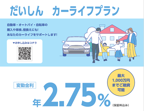 | ご融資金額 | 1,000万円以内(1万円単位) |